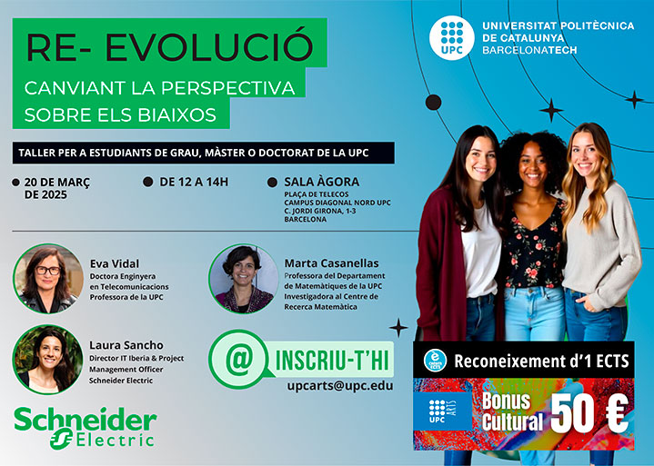 El taller ‘Re-evolució. Canviant la perspectiva sobre els biaixos’ tindrà lloc el 20 de març, de 12 a 14 h, a la Sala Àgora (plaça de Telecos. Campus Diagonal Nord UPC. c. Jordi Girona, 1-3. Barcelona), i forma part del cicle ‘Women Tech Talent Sessions’, organitzat per la UPC i Schneider Electric.