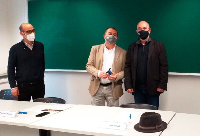 D'esquerra a dreta: el director sortint del Departament d'Enginyeria de Serveis i Sistemes d’Informació, Antoni Urpí; el rector, Francesc Torres, i el nou director del Departament, Enric Mayol