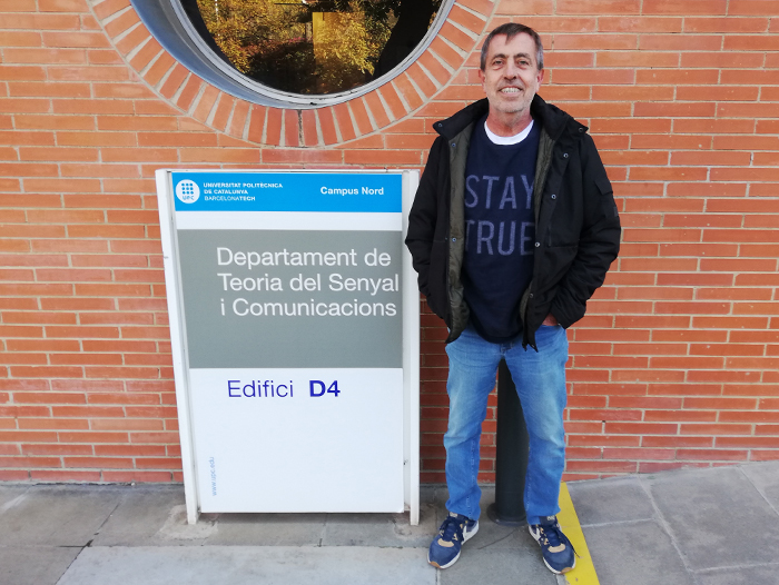 Jaume Comellas, a l'exterior del Departament de Teoria del Senyal i Comunicacions, al Campus Nord de la UPC
