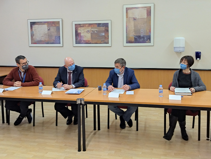 D'esquerra a dreta: El director sortint del Departament, Jordi J. Mallorquí; el rector de la UPC, Daniel Crespo; Jaume Comellas, nou director, i Ana B. Cortinas, secretaria general de la Universitat, en l'acte de presa de possessió