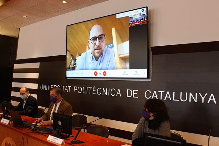 El professor Josep Maria Font, nou catedràtic d'Enginyeria Mecànica, va participar en l'acte via Meet.