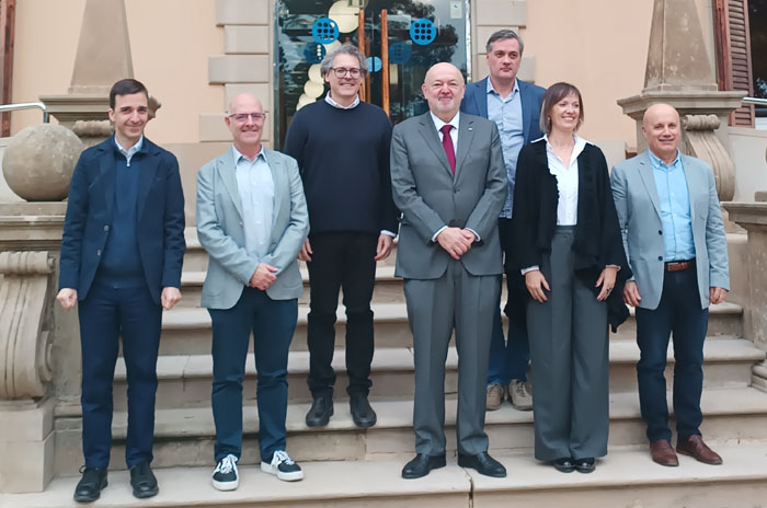Els nous catedràtics de la UPC, juntament amb el rector, el vicerector de Política de PDI i la secretària general