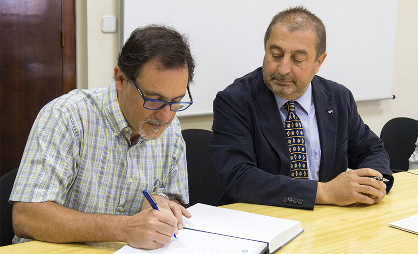 Rafael Pastor, amb el rector de la UPC, Francesc Torres, en un moment de la presa de possessió com a director