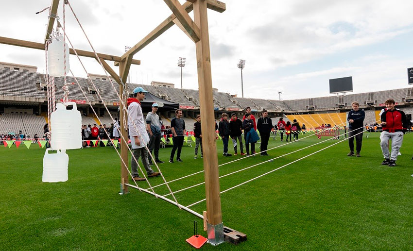 Imatge d'un dels experiments que es van muntar a l'Estadi Olímpic Lluís Companys, en el marc de la primera edició del Visions-STEAM Anella