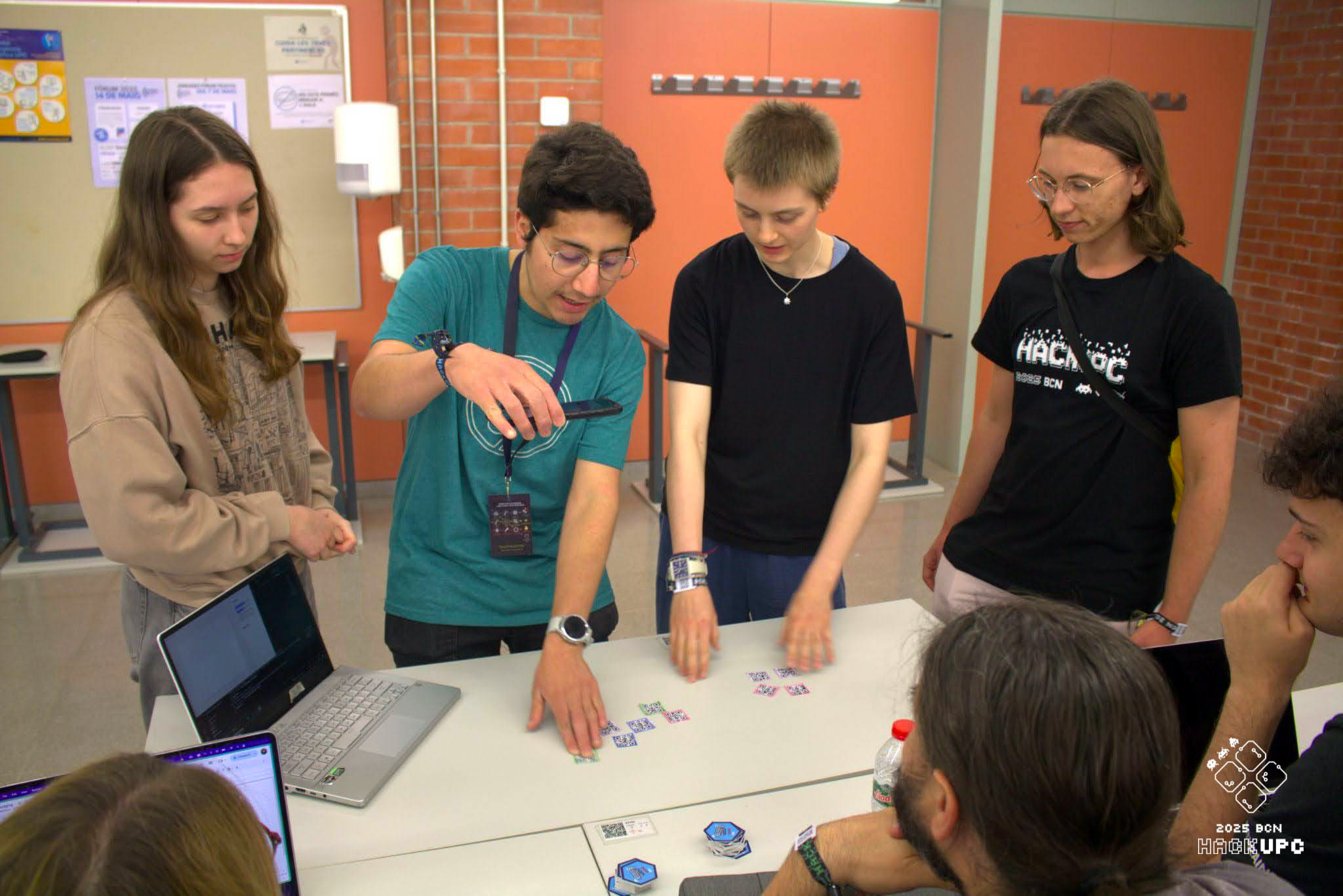 Estudiants a la HackUPC 2025 durant el desenvolupament de projectes tecnològics innovadors