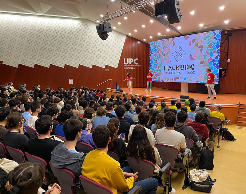 La HackUPC 2023, la primera hackató i la més gran d’Espanya, s'ha tornat a celebrar enguany a la Universitat Politècnica de Catalunya - BarcelonaTech (UPC) de forma íntegrament presencial i organitzada per estudiants de la Facultat d’Informàtica de Barcelona (FIB) i de l’Escola Tècnica Superior d’Enginyeria de Telecomunicació de Barcelona (ETSETB) de la Universitat. En aquesta edició, que ha tingut lloc als aularis A3, A4, A5 i A6 del Campus Diagonal Nord de Barcelona, hi han participat estudiants d’arreu del món, que han competit per desenvolupar el millor projecte tecnològic en un màxim de 36 hores per donar solució a un repte plantejat. En altres edicions els reptes han estat des de crear solucions tecnològiques per lluitar contra el canvi climàtic, o dissenyar sistemes per resoldre problemes de sanejament, manteniment i seguretat a les ciutats, fins a crear aplicacions mòbils d'assistents virtuals amb finalitats socials o bé dissenyar un xatbot per a aplicacions financeres, entre d’altres.