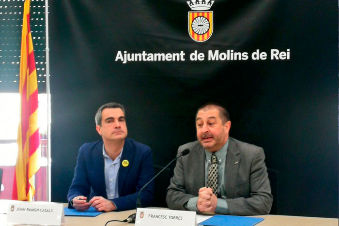 D'esquerra a dreta, a la imatge, l'alcalde de Molins de Rei, Joan Ramon Casals, i el rector de la UPC, Francesc Torres