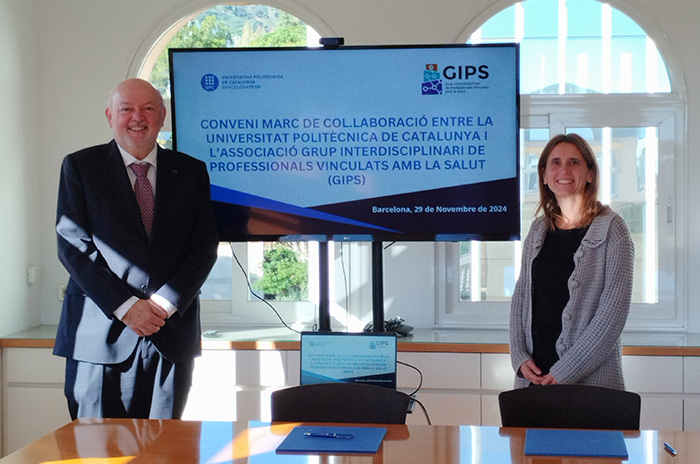 La UPC ha formalitzat, el 29 de novembre, un conveni marc de col·laboració amb l’Associació Grup Interdisciplinari de Professionals vinculats amb la Salut (GIPS) per promoure innovació i recerca en l’àmbit de la tecnologia aplicada a la salut, i abordar els reptes emergents del sector.