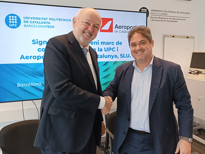 L’acord l’han signat, per quatre anys, el president i conseller delegat d’Aeroports de Catalunya, Daniel Albalate, i el rector de la Universitat Politècnica de Catalunya - BarcelonaTech (UPC), Daniel Crespo.