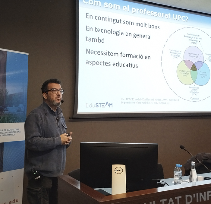El professor David López ha ofert una xerrada amb títol ‘Un repàs a la situació actual de l’educació de l’enginyeria: tendències, evidències i canvis que necessita la UPC’.