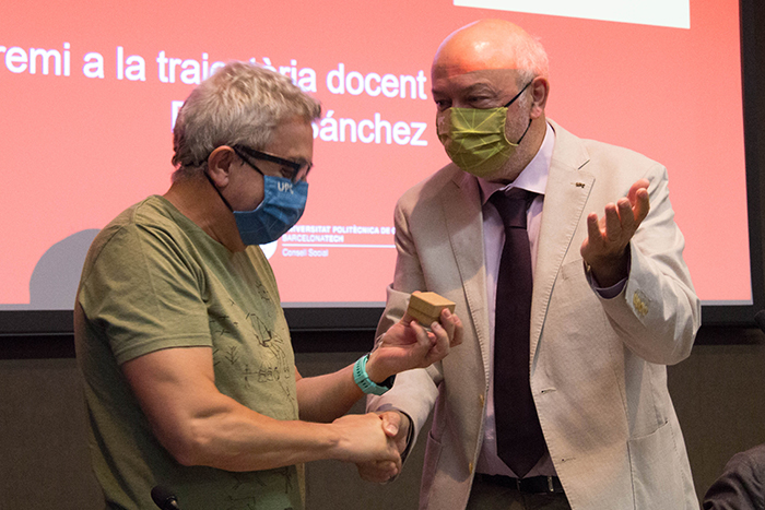 El rector de la Universitat Politècnica de Catalunya · BarcelonaTech (UPC), Daniel Crespo, i el president del Consell Social de la Universitat, Ramon Carbonell, han presidit l’acte de reconeixement de Fermín Sánchez Carracedo, professor del Departament d’Arquitectura de Computadors a la Facultat d’Informàtica de Barcelona (FIB), reconegut amb el Premi UPC a la Qualitat en la Docència Universitària l’any 2020. Un guardó convocat pel Consell Social que també va rebre Lourdes Reig, professora del Departament d’Enginyeria Agroalimentària i Biotecnologia i, actualment, vicerectora de Política Internacional, que rebrà un reconeixement institucional el proper mes d’octubre.