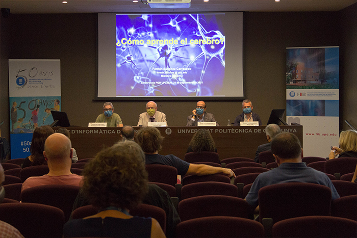 En el decurs de l’acte de reconeixement, que ha tingut lloc dimarts, 21 de setembre, a les 13 h, a la sala d'actes Manuel Martí Recober de la FIB, al Campus Diagonal Nord de Barcelona, el professor Fermín Sánchez ha impartit la xerrada ¿Cómo aprende el cerebro?