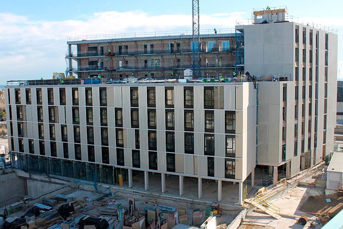Les obres de la nova residència d’estudiants i investigadors i investigadores (edifici H) estan ja a la recta final. El centre comptarà amb 191 unitats –habitacions i espais per als residents– amb fins a 300 places per allotjar estudiants, professorat i investigadors, donant així servei a la comunitat universitària. L’edifici tindrà un gran pati interior que integrarà amplis passadissos amb accés a les habitacions. Serà un edifici altament sostenible, amb una instal·lació fotovoltaica a la 8a planta i altres mesures d’eficiència energètica. A més, comptarà amb diversos serveis prestats per entitats socials.