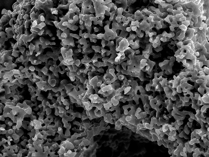 Imatge de microscopia electrònica d'un material de fosfat de calci per a regeneració òssia