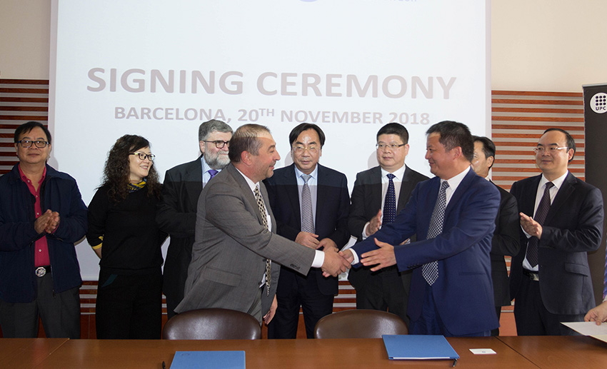 Moment de la signatura del conveni de col·laboració entre la UPC i la Shaoxing University