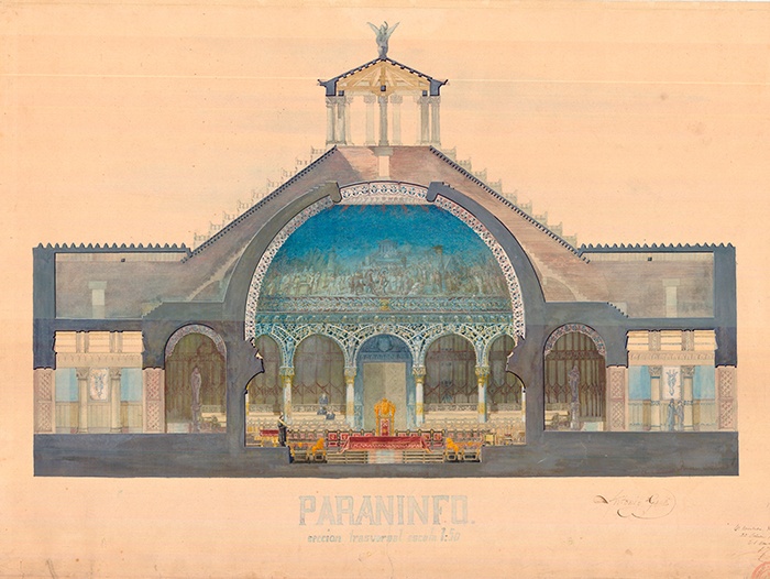 Dibuix d'Antoni Gaudí sobre el paranimf de la Universitat de Barcelona. Imatge: Càtedra Gaudí i Arxiu Gràfic de l'ETSAB de la UPC