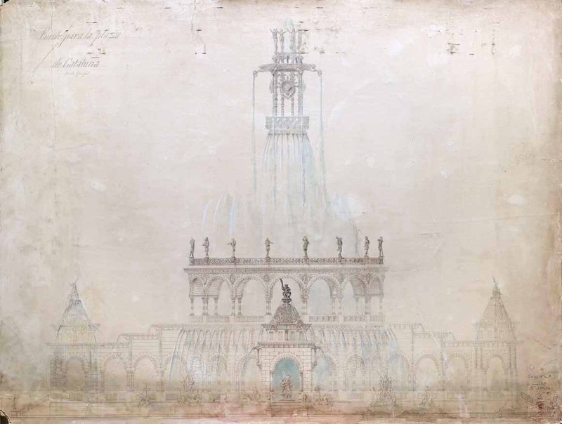 Font per a la plaça de Catalunya, d'Antoni Gaudí, 1877. Imatge conservada a Càtedra Gaudí i Arxiu Gràfic de l'ETSAB de la UPC
