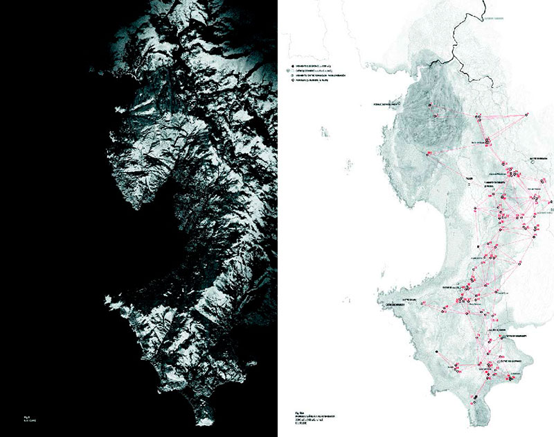 Dos mapes del territori gallec analitzat per Elisa Gallego Picard, publicats en la tesi doctoral guanyadora del Premi Europeu Manuel de Solà-Morales.