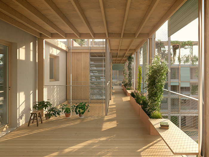 El repte proposat per l'Ajuntament de Barcelona exigia l'elaboració d'un projecte d'ampliació d'edificis residencials existents amb sistemes innovadors i sostenibles. La solució ideada pels investigadors de la UPC es planteja com una estructura de pòrtics i entramat de fusta que s’adossa a l’edifici existent i permet millorar, protegir, reparar, reequipar i ampliar tant els habitatges com els espais comunitaris. Es tracta d'un sistema obert que, partint d’una estructura autoportant, consisteix en un suport modular muntat en sec, adaptable a diferents usos i necessitats.