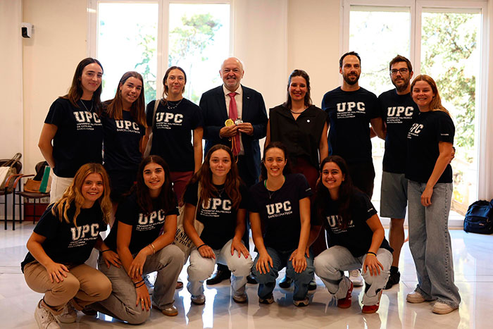 El rector de la Universitat Politècnica de Catalunya - BarcelonaTech (UPC), Daniel Crespo, i la vicerectora de Docència i Estudiantat, Anna Mujal, han rebut els 19 estudiants que enguany han participat representant la Universitat als Campionats de Catalunya, d’Espanya i d’Europa Universitaris, amb l’objectiu de donar-los la benvinguda al nou curs acadèmic i de reconèixer la seva activitat compatibilitzant els estudis amb la pràctica esportiva d’alt nivell.
