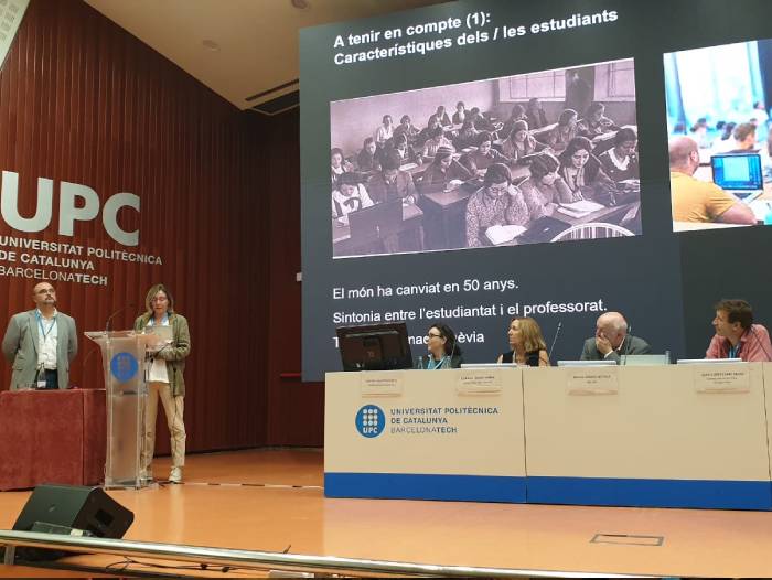 Al seu torn, la directora de l'Escola Tècnica Superior d’Enginyeria de Camins, Canals i Ports de Barcelona (ETSECCPB), Esther Real, i el director de l'Escola Tècnica Superior d’Enginyeria de Telecomunicació de Barcelona (ETSETB), Josep Pegueroles, ambdós en representació de les direccions dels centres docents a través del Consell Acadèmic de la UPC, han fet un repàs de l'evolució de metodologies docents, les noves tendències, les debilitats del sistema i els reptes que planteja el canvi de model docent. Segons han dit, s’ha de tenir en compte que el món ha canviat en 50 anys i, per tant, els estudiants no són com eren. Han recordat que l’ensenyament online no és la panacea i que la presencialitat continua sent important, especialment pel que fa a l’acompanyament del professorat. En qualsevol cas, “l’estudiant ha de ser el centre de l’aprenentatge”, han assegurat.