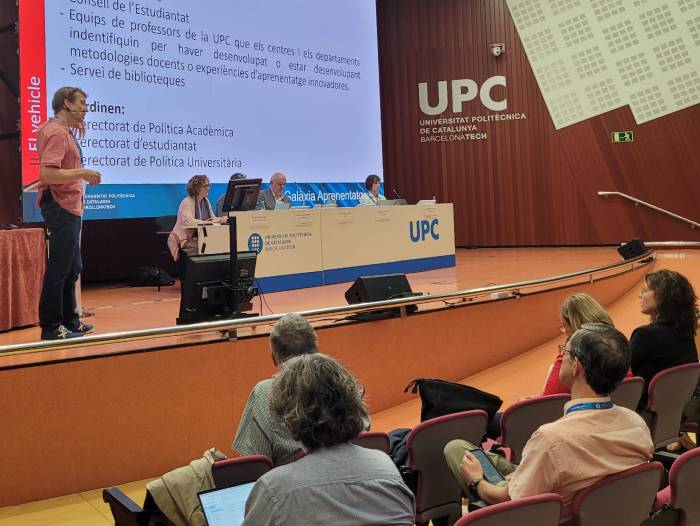 El vicerector de Política Universitària, Joan Gispets, presentant la proposta de treball per desenvolupar 'Galàxia Aprenentatge'