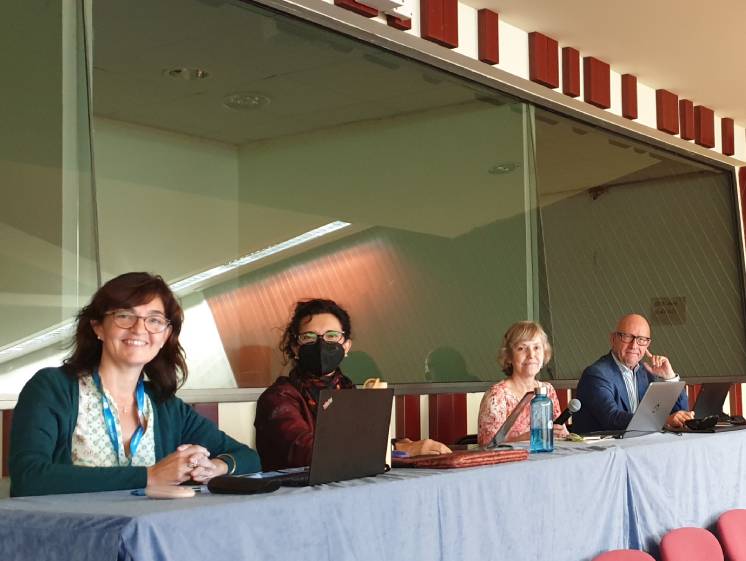 Adriana Llorens, directora de l'ICE, Ana Rosa Cánovas, cap del Servei de Comunicació, la professora Núria Castell i el professor Eusebi Jaurata (tots dos jubilats) han fet relators de les conclusions sorgides durant les dues sessions del Claustre Universitari dels dies 4 i 7 d'octubre