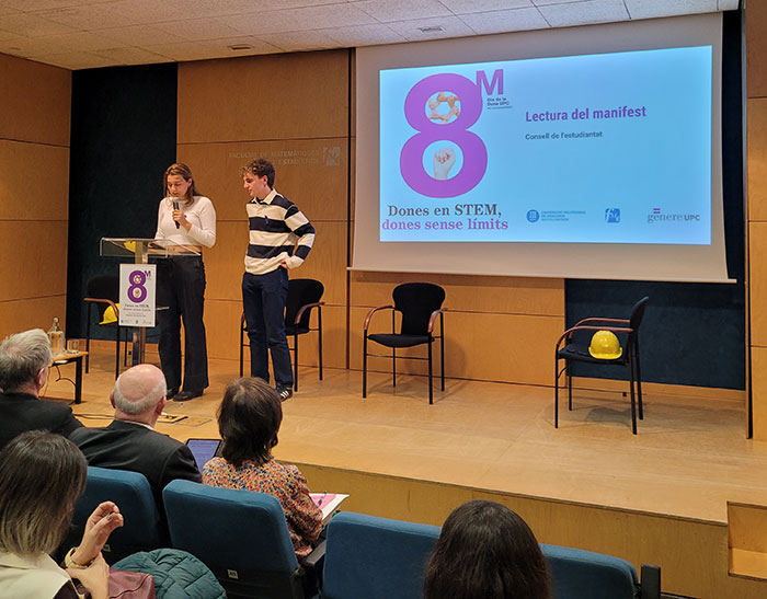 Tot seguit, ha donat pas a la lectura d'un manifest en defensa de la igualtat de gènere en l'àmbit acadèmic i professional, per part de l'estudiant Marta Buc, acompanyada de l'estudiant Jan Cubo, ambdós representants del Consell de l'Estudiantat.