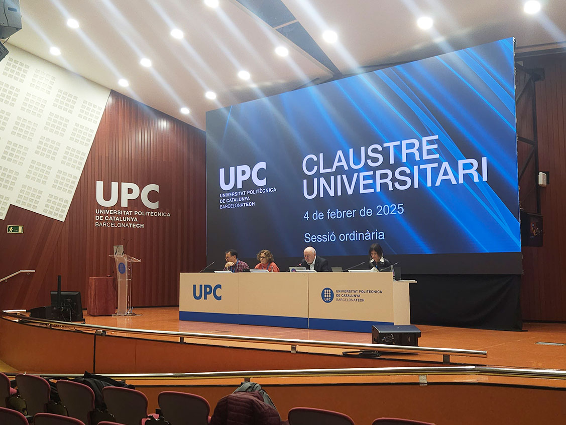 La sessió 01/2025 del Claustre Universitari de la Universitat Politècnica de Catalunya - BarcelonaTech (UPC), que ha tingut lloc el 4 de febrer, en modalitat mixta, s'ha pogut seguir en directe, per Zonavídeo UPC, on es pot veure en obert.