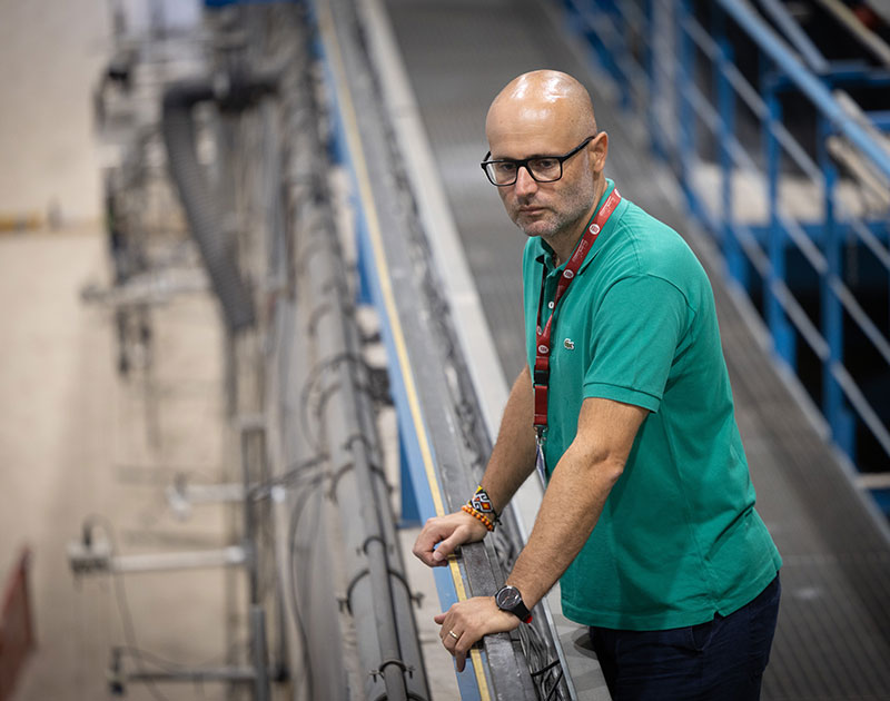 L'investigador Corrado Altomare, al Canal d’Investigació i Experimentació Marítima (CIEM) del Laboratori d'Enginyeria Marítima de la UPC. Imatge: Fundación BBVA.