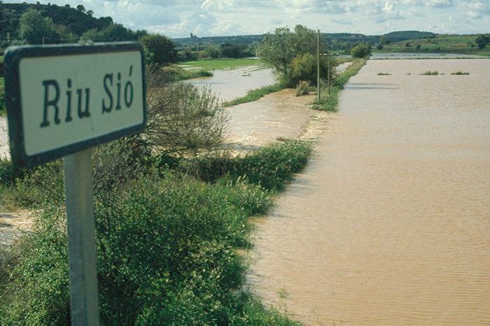 Les dades recollides a l'arxiu 'MEDIFLOOD' demostren que els episodis meteorològics extrems són recurrents en el vessant mediterrani. A la foto, desbordament del riu Sió, el novembre del 1997