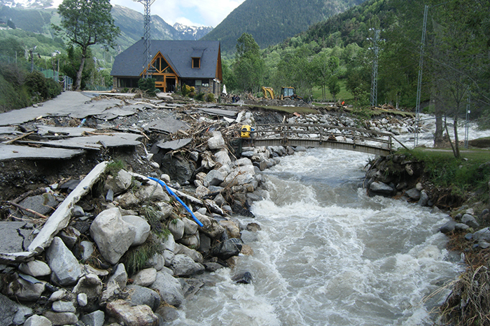 Riuades a Salardú, Val d'Aran, el 18 de juny del 2013, com a conseqüència del desbordament de La Garona