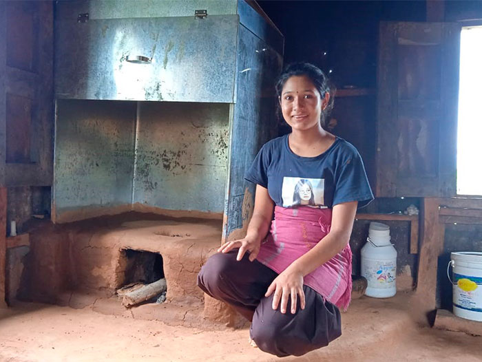 Una dona d'una població de la zona rural de Bhimpedi, al Nepal, a uns 50 quilòmetres de la capital, amb una cuina instal·lada