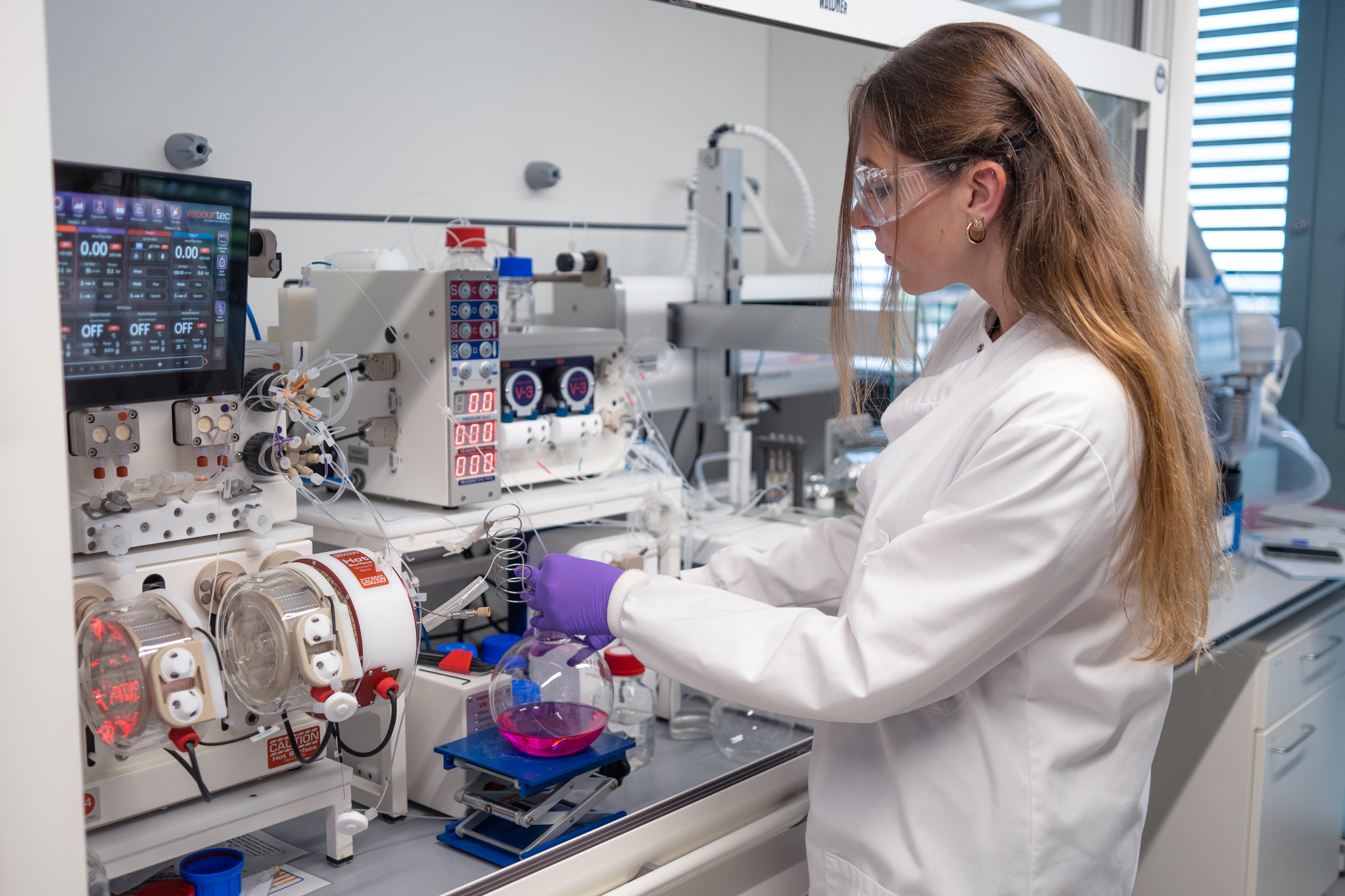 La investigadora Helen Hölzel treballant al laboratori MOST de la UPC. Imatge: Paulius Baronas