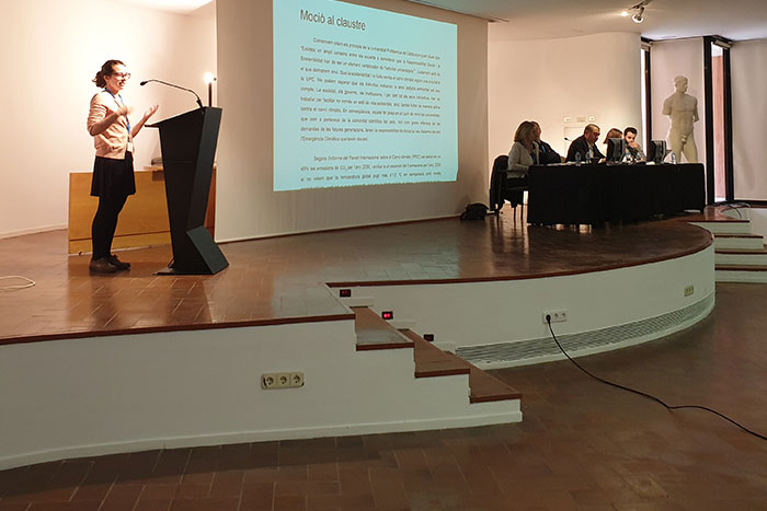 L'estudiant Lola Ache va presentar al Claustre Universitari la moció en què s'insta a declarar l’Estat d’Emergència Climàtica
