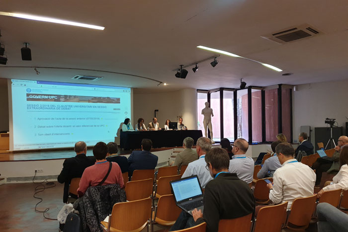 La sessió extraordinària del Claustre Universitari del 21 de maig va tenir lloc a l'ETSAB