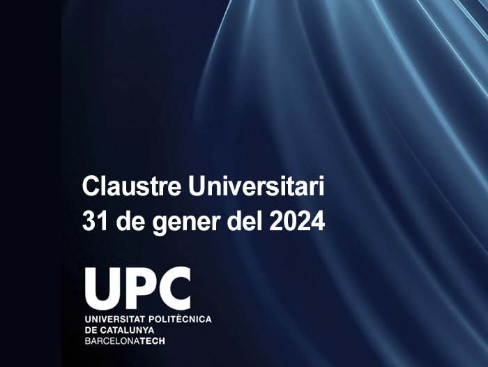 La sessió 01/2024 del Claustre Universitari de la Universitat Politècnica de Catalunya - BarcelonaTech (UPC) ha tingut lloc el 31 de gener en modalitat mixta, presencialment, a l’Auditori de l’edifici Vèrtex, a Barcelona, i per videoconferència, i s'ha emès en directe i en obert per Zonavídeo UPC.