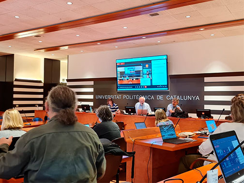 Membres del Consell de Govern assistents a la reunió presencial a la Sala de Juntes de la UPC, que també s'ha fet per videoconferència