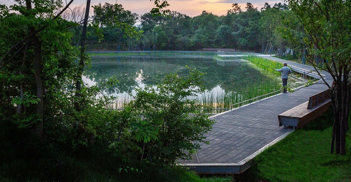 El projecte neix de la voluntat de transformar una antiga pedrera de pedra calcària abandonada en un entorn de biodiversitat, un espai públic dinàmic on la ciutadania pot anar experimentant el procés de recuperació de la flora i la fauna. El parc, en el què destaquen quatre cràters gegantins, es troba a 30 km de la ciutat de Nanjing i al vessant sud de la muntanya Tangshan, a la Xina. El projecte, que té una superfície de 40 Ha, ha permès restaurar l'ecologia i donar exemple per al futur desenvolupament sostenible d'aquest àmbit públic a la regió, amb un projecte sostenible tant socialment, econòmica com ambiental.