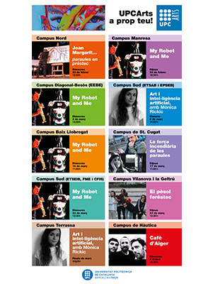 UPCArts és un programa cultural que posa de relleu el vincle entre l’art i la cultura amb la ciència i la tecnologia per enriquir la vida universitària i explorar vies de recerca, i que proposa recuperar i revaloritzar la vida presencial a la UPC a través de la cultura. UPCArts també vol obrir la UPC a la vida cultural de les localitats on té presència i convertir, així, la universitat en un agent cultural més del territori.