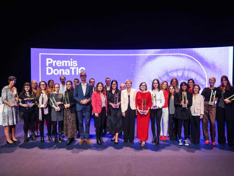 Foto de família de les guanyadores i de les entitats promotores dels Premis DonaTIC 2022