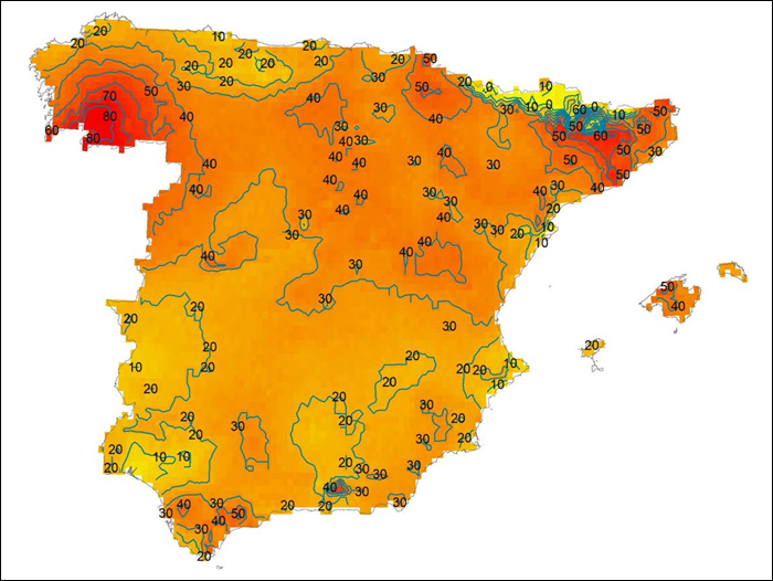 A les principals ciutats de l'Espanya peninsular l'increment mitjà de les temperatures ha estat de 3,54°C, entre el 1971 i el 2022, i són de les que registren les anomalies climàtiques més acusades del món. En aquests darrers 50 anys, els dies d'estiu han passat de 90 a 145, cosa que representa dos mesos més de dies càlids. I les nits tropicals s'han incrementat en 18 i han passat d'una mitjana de 45 a 63. Així es desprèn d'un estudi elaborat pel Centre de Política del Sòl i Valoracions (CPSV) de la Universitat Politècnica de Catalunya - BarcelonaTech (UPC).