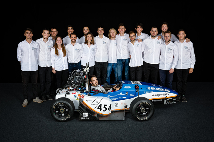 El nou equip Driverless, format per estudiants d'Enginyeria Industrial, Telecomunicacions i Informàtica, amb el seu bòlid XALOC