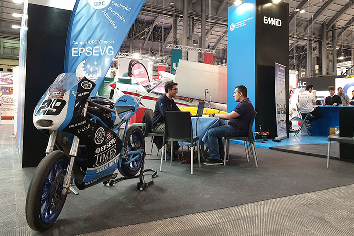 L'Escola Politècnica Superior d'Enginyeria de Vilanova i la Geltrú (EPSEVG) exposa alguns dels projectes que desenvolupen els seus estudiants, en aquest cas des de l'estand de l'Ajuntament de Vilanova i la Geltrú. Allà es pot veure la moto elèctrica de l’associació e3team, la moto de combustió de l’equip EPSEVG Racing Team, amb què participen en les competicions internacionals Motostudent. També estan, explicant els seus projectes i plantejant activitats, l'equip Vilanova Formula Team, l’associació d’estudiants Vilanova Drone Team, l'associació de disseny industrial Vilanova Design / MESDI i la colla castellera Llunàtics UPC Vilanova. A l’espai, a més, s’exposa el vehicle autònom submarí Guanai II, del grup de recerca de Sistemes d’Adquisició Remota i Tractament de la Informació (SARTI), amb què s’ha mesurat i avaluat la influència de les aigües del Mar Menor al Mediterrani.