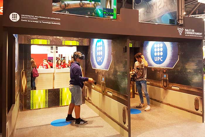 Experimentar realitat virtual i provar videojocsEl Centre de la Imatge i la Tecnologia Multimèdia (CITM) de Terrassa, centre adscrit a la UPC, també organitza l’Aula de Tecnologies Multimèdia des d’on proposa als visitants del Saló posar a prova els seus reflexos amb el videojoc de realitat virtual ‘Aliens Attack’. En un torneig mundial de 2 minuts, el jugador ha de protegir els ‘pilars del coneixement’ de l’atac dels invasors alienígenes i aconseguir la màxima puntuació per encapçalar el rànquing mundial i guanyar així un iPad Pro de 12,9″ 64GB Wi-Fi. ‘Aliens Attack’ és una activitat realitzada per Marc Ripoll, professor del grau en Disseny i Desenvolupament de Videojocs del CITM.