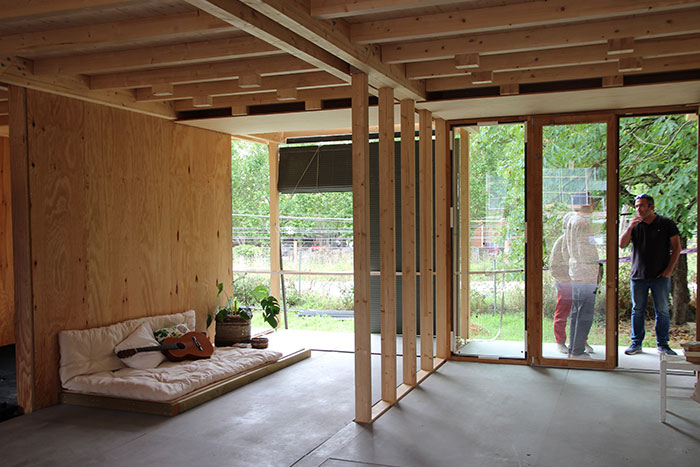 - Un espai central confortable durant tot l’any amb una ajuda mínima dels sistemes actius. Aquest espai pot reunir a grans grups de persones i és el centre de les activitats de la casa, amb el propòsit de facilitar un espai compartit i col·lectiu.