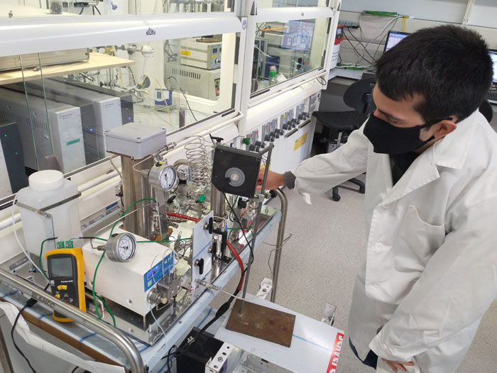 Un investigador del grup de recerca NEMEN, fent anar un dels aparells del laboratori de Catàlisi i Energia