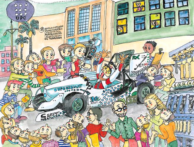 Pilarín Bayés ha plantejat ’La petita història de l’ESEIAAT (UPC-Terrassa)’ amb el seu estil singular, que l’ha convertit en una de les il·lustradores més conegudes i reconegudes de Catalunya. L’autora ha realitzat 14 il·lustracions plenes de moviment, on estudiants i professorat interactuen amb enginys històrics i actuals dins dels edificis, els laboratoris i altres instal·lacions de la Universitat Politècnica de Catalunya · BarcelonaTech (UPC) a la ciutat de Terrassa. A través de les escenes representades, es pot conèixer d’una manera entenedora i amena la història de l’ESEIAAT i l’evolució que aquest centre ha viscut de la mà de la tecnologia i l’ensenyament de l’Enginyeria al llarg d'aquests anys.