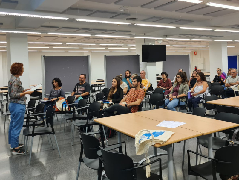 Professorat de les escoles i instituts que participen a la quarta edició del projectes, a la formació per introduir la perspectiva de gènere a les aules.