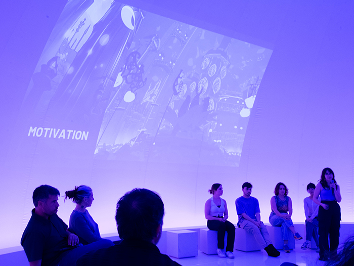 El projecte, que es podrà conèixer el 15 de juny de 15:30 a 16 hores, a l'espai multipantalla Stage+D, utilitza un escàner làser per dibuixar i sonificar constel·lacions d’estrelles al cel nocturn. Rememora l’hàbit perdut de mirar al firmament a la recerca de respostes i qüestiona el paper de la humanitat en el vast univers desvetllat per la foscor de la nit.